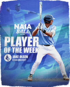 Jake Olsen – Keiser (FL) – The third-year right-handed hitting infielder delivered an outstanding performance at the plate this past week. Olsen finished the week hitting 11-for-19 while driving in nine runs, drawing four walks, and recording three doubles, one triple, and one home run. Olsen opened his season in Keiser’s home opener against McPherson (KS), where he went 3-for-5 with five RBIs, including a game-ending home run in the bottom of the eighth inning that secured a mercy-rule victory. His offensive production did not stop there, as Olsen followed up with an impressive series against Brewton-Parker (GA), going 8-for-14 and collecting five hits in the series finale. Olsen’s dominant showing at the plate earns him this week’s NAIA Ball Player of the Week honors.